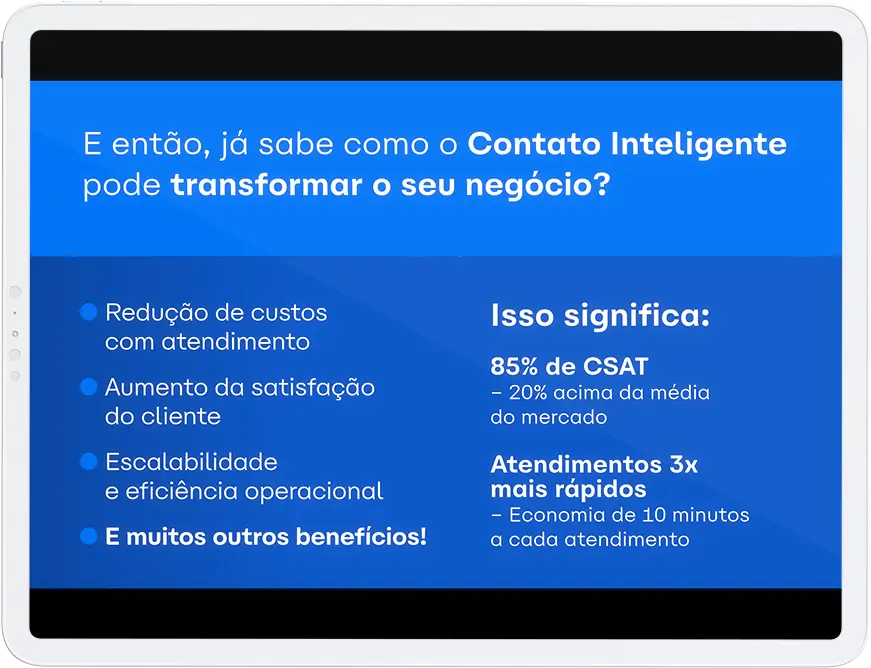 Centralização via WhatsApp, combinando automação e atendimento humano com Contatos Inteligentes.