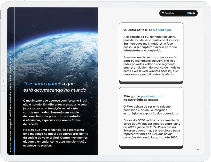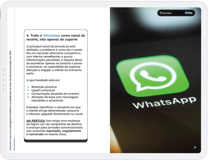 Produzido para líderes de operadoras entenderem por que infraestrutura já não garante crescimento, onde a receita se perde na operação e como capturar valor com IA e jornadas conversacionais